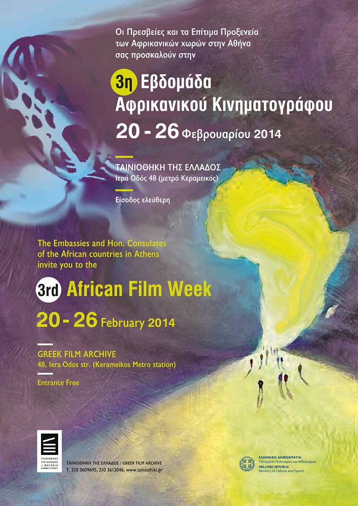 Η Ταινιοθήκη της Ελλάδος, οι Πρεσβείες των Αφρικανικών χωρών και τα Επίτιμα Προξενεία που είναι διαπιστευμένα στην Ελληνική Δημοκρατία, διοργανώνουν την 3η Εβδομάδα Αφρικανικού Κινηματογράφου, με ελεύθερη είσοδο για το κοινό. Οι θεατές θα έχουν την ευκαιρία να συνεχίσουν το ταξίδι τους στην αφρικανική ήπειρο, να ακολουθήσουν γνώριμες ή όχι διαδρομές και, διασχίζοντας γεωγραφικά σύνορα, να γνωρίσουν ακόμα περισσότερες ταινίες και ντοκιμαντέρ, παραγωγής ως επί το πλείστον μεταξύ 2004 και 2013 από καταξιωμένους, αλλά και νεότερους σκηνοθέτες. Καθ’ όλη τη διάρκεια της 3ης Εβδομάδας Αφρικανικού Κινηματογράφου θα προβληθούν συνολικά δεκαοκτώ ταινίες μεγάλου μήκους και μια μικρού μήκους, κυρίως μυθοπλασίας αλλά και ντοκιμαντέρ, από οκτώ αφρικανικές χώρες, δίνοντας έτσι τη δυνατότητα στο κοινό να εξοικειωθεί με τις πολιτιστικές εμπειρίες της κάθε χώρας.